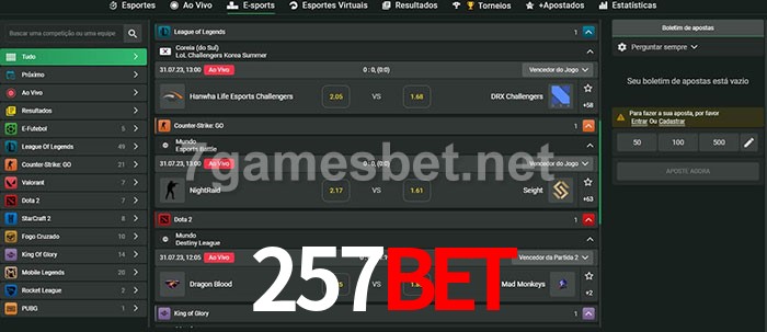 O 257bet oferece uma grande seleção de opções de apostas em e-sports com probabilidades competitivas